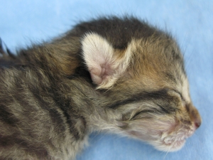 まだ眼があいていない。 耳がふさがっている。 被毛の色はノーマル。
