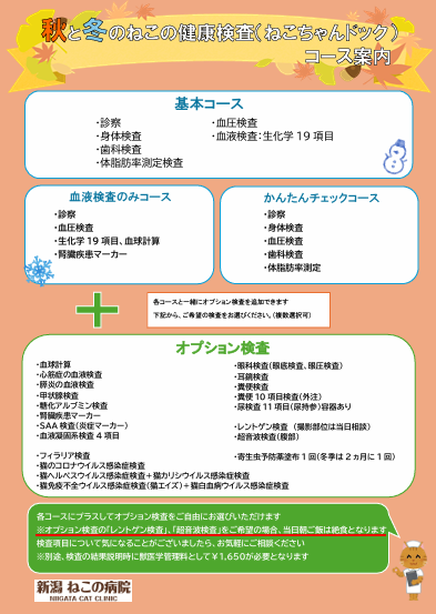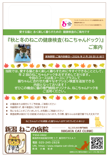 秋と冬の健康検査 ねこちゃんドックがスタートしました!